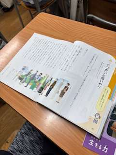 こんな時どうする?といった写真、イラストを見て子どもたちは考え自分の意見を全体に共有します。