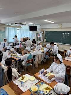 今日は6年1組で給食を食べています。