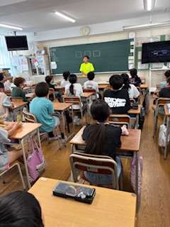 今日は歌島中学校の教職員の方が6年生との交流で出前授業に来てくださいました。