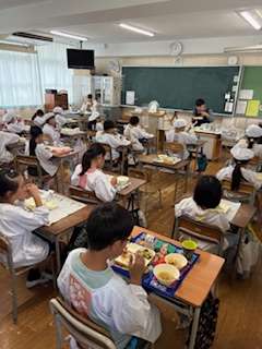 今日は3年1組で給食しています。