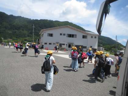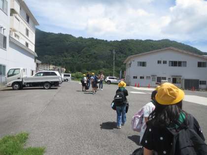 10時45分ごろ 白樺館(宿舎)に到着しました。大きな荷物を置いて早速、飯盒炊飯の準備に取り掛かっています。