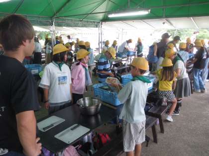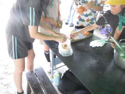 野菜を切って鍋に入れていきます。水の分量も考えながらしていきます。