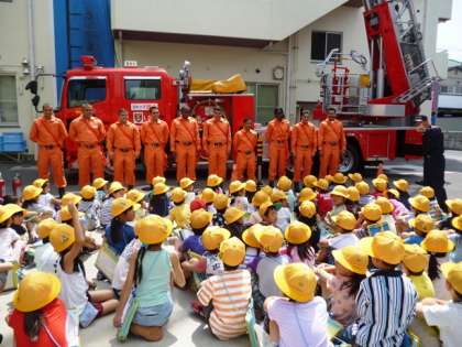 町たんけんで消防署に行ってきました。煙体験や消火器を使う体験など、普段できないことを経験することができました。