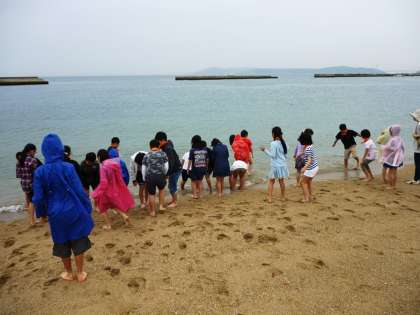 楽しみにしていた「海」では、貝殻を拾う、海に足をつける、波と戯れるなど、思い思いに「ひと時の海」を過ごしていました。