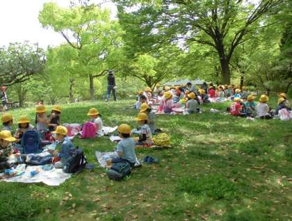 小学校初めての遠足は、天候に恵まれました。上坂部西公園では、芝生を思い切りかけまわって遊んだ後、すずしい木陰でお弁当を味わい、木々や草花の観察もしました。友だちと一緒に、初夏の自然を満喫し、大満足の一日でした。