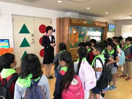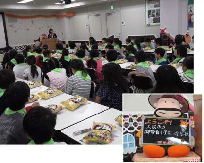 「きのこの山」と「たけのこの里」が次々にできる様子を見学させていただきました。チョコレートのいい香りのする工場で、チョコレートがお皿に注がれ、きのこの山がベルトコンベアーで運ばれていく様子に、目を丸くしている子ども達でした。