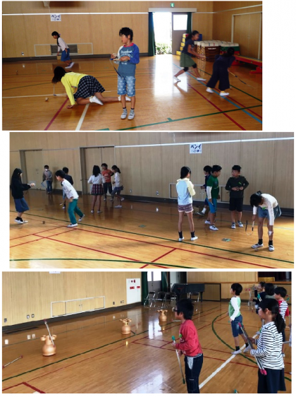 足でけって遊ぶチェギ、矢をつぼに入れるトゥホ、ユンノリ(すごろく)、ペンイ(こま)と日本の遊びと似ていたり、少し違いがあったりというお隣の国の遊びを、子どもたちは楽しんでいました。また、楽器チャンゴにも挑戦し、簡単なリズムを演奏していました。
