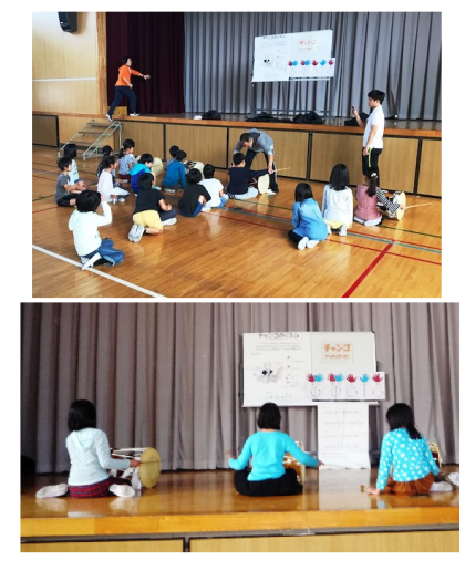 2日間かけて、韓国・朝鮮の楽器や遊びを、1〜6年生が各学年1時間ずつ体験しました。