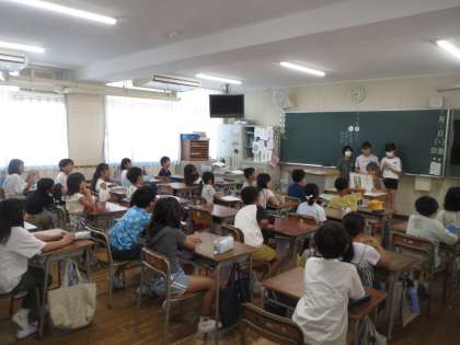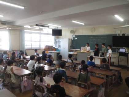 6年生が平和学習の一環として各クラスにまわり、平和に関する紙芝居を読み聞かせしました。6年生が伝えてくれる内容を真剣に聞く姿が素晴らしかったです。学校をみんながつくろうとする姿が印象的でした。