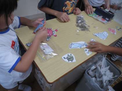 たいやひらめ、いかなどカラフルな魚たちがたくさん出来上がりました。