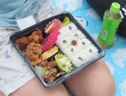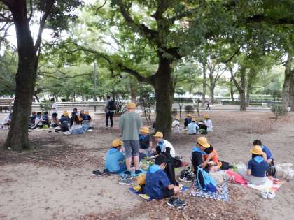 お弁当を受け取って、活動班でいただきます。