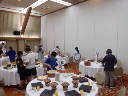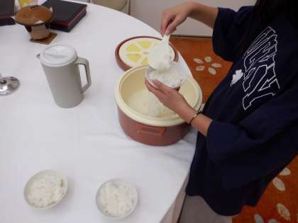 食事係の児童は、協力してご飯をよそったり、お水を入れたりしていました。