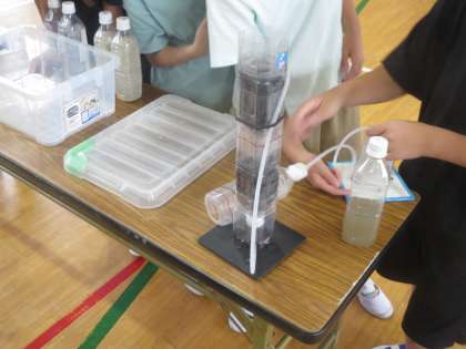 装置も自分たちで組み立てて見た目の汚れやにおいがなくなっていく様子を観察することができました。