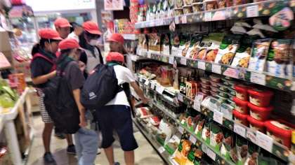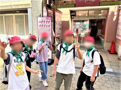 総合的な学習「いろいろな国について知ろう」の学習で、鶴橋にある大阪コリアタウンへ行きました。御幸森天神宮や、鶴橋商店街などを、ソンセンニムに説明してもらいながら進み、班活動では大阪コリアタウンで買い物を楽しみました。