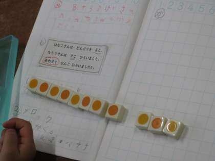 ブロックを使う子、さくらんぼを書く子といろいろやり方は出てきましたが答えは「11個」