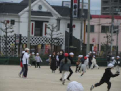 今日の児童集会は全校での鬼ごっこ。最初は集会委員会の人が鬼になり、みんなを追いかけます。白帽子だった人たちはタッチされると帽子を赤にして今度は鬼となって追いかけます。