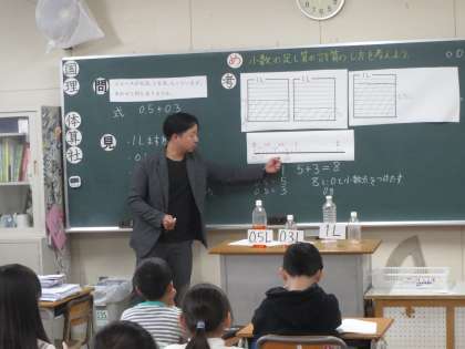 小数について学習を積み重ねてきて今日はたし算。1つのペットボトルに入ったジュースを合わせる問題。