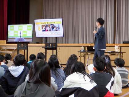 5年生は社会科でメディアについて学習します。3学期に学習ではあるのですが先取りして出前授業で毎日放送で番組をつくっておられる方にお話を聞くことができました。