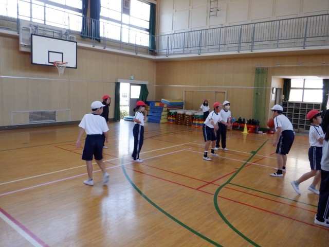 この単元は今日で3時間目。シュートやドリブルが少しずつできるようになってきました。ゲームの中でもボールを操作し、シュートまでできるようになってきました。チームでの学習時間を有効に使ってチームの課題の克服にもちゃれんじしていってます。次の時間にはさらに深く学べるようチームで協力して学習を進めます。
