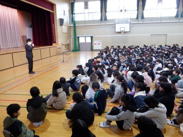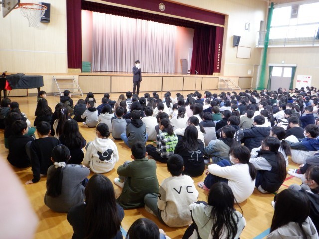 「3学期、楽しい学校をつくるためにあなたはなにをしますか。」という問いで私の話は終わりました。
