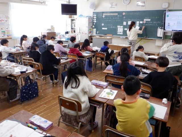昨日の続きの授業です。今日は総合教育センターから指導の先生が来られ授業を見ていただきながら、一緒に学習に取り組みました。