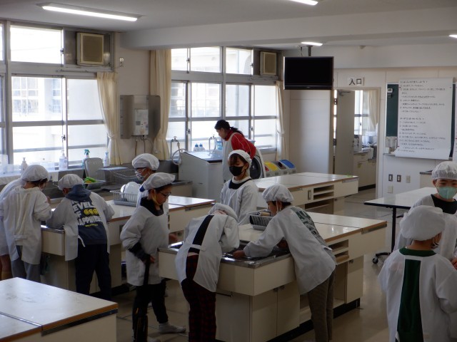 3年生は家庭科室での初めての調理。チヂミづくりに挑戦です。ごま油のいい匂いが学校中に漂っていました。グループで協力して完成させたチヂミをおいしくいただきました。片付けの際には家の方がしてくださっている食器洗いや生ごみの処理などを体験し、毎日家庭でしてもらっている方の苦労も感じることができました。