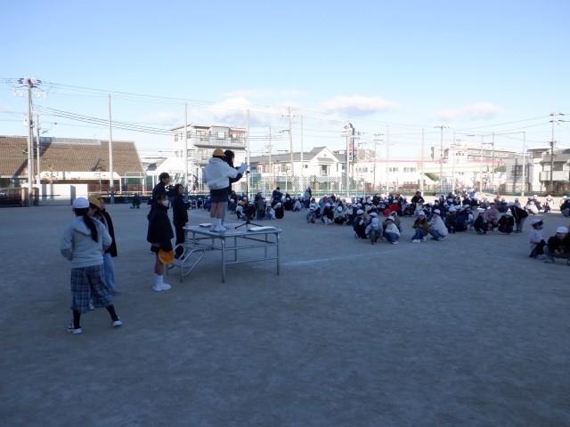 今日は集荷委員会企画の「氷鬼」捕まった人は氷のようにじっとしないといけません。今日の鬼は6年生。1年生から5年生と教職員は鬼から逃げます。鬼になった