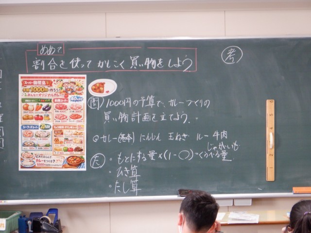 学習後は「割合はややこしいけどお得に買えるからうれしい」「実際にスーパーに行って買い物してカレーを作ってみたい」などの感想が出てきました。学習したことが生活に使える喜びも感じられた授業になりました。