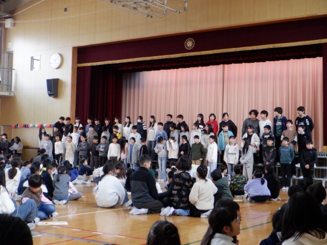 今日は6年生の卒業を祝う会です。1から5年生はこの日のためにメッセージボードを準備し、班の6年生に感謝の気持ちを伝えます。また、児童会を中心にサブリーダーの5年生は企画・運営をしていきます。楽しい会になるように準備を進めてきました。6年生からはお礼にということで歌のプレゼントがありました。音響のトラブルはありましたが、6年間の思いを歌声に乗せて伝えると、ざわつく会場の空気を一つにし、思いを聴き入れようとする在校生の姿が見られました。卒業式まであと16日。6年生から学ぶことがまだまだあると思います。1日を大切にしていきましょう。