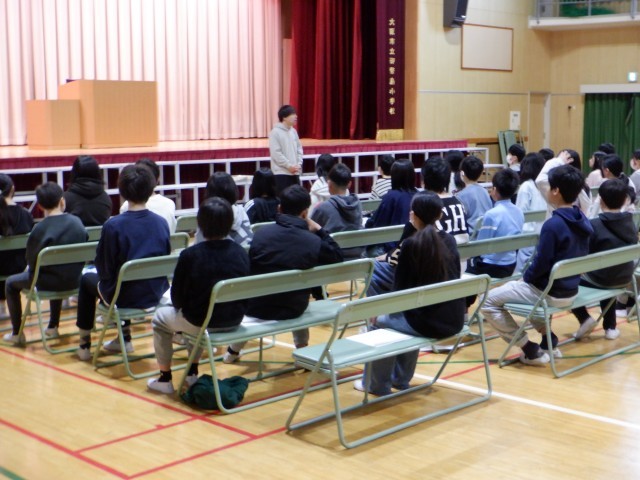 卒業式に向けて体育館には椅子が並びました。また、6年生は最後の授業である卒業式の学習が始まりました。卒業式は6年間で学んだことの集大成です。座る姿勢、立つ姿勢、礼など今までいろいろな場面で学んだことを発揮します。中身については当日のお楽しみですので伏せますが、成長した姿を見せてくれると信じています。
