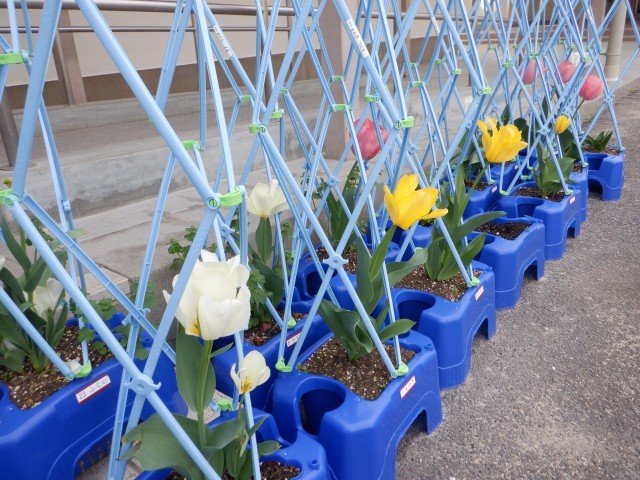 芝生広場には桜が満開。チューリップも咲いています。明日は雨の予報ですので写真を撮っておきました。ご覧ください。