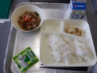 今日の献立コッペパン白菜のとろみ煮厚揚げのピリ辛醤油かけ豚肉とサンド豆のオイスタ...