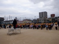 1年生は運動場で自分が作った「凧」をあげます。広い運動場を端から端まで駆け抜け...