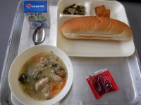 今日の献立コッペパン中華おこわ卵スープキャベツのオイスターソース炒め牛乳