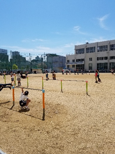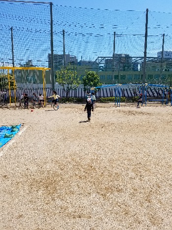 暖かくなってきました。子どもたちは、ボール、一輪車、鉄棒などの遊びを楽しんでいます。