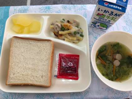 「マカロニグラタン」は、児童に大人気のメニューです。牛乳とクリームを使用したコクのあるホワイトグラタンです。