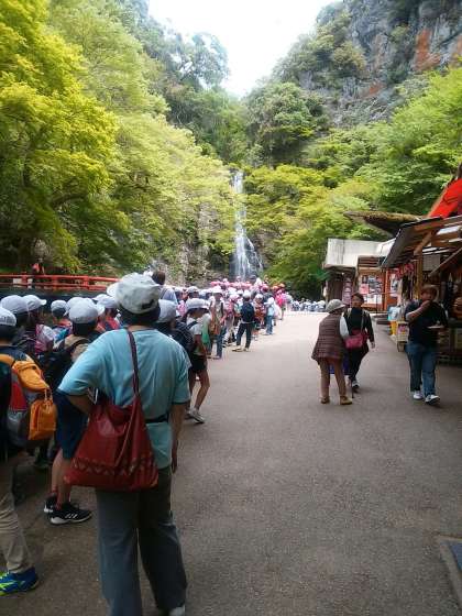 箕面昆虫館を見学した後、箕面の滝に向かいました。昆虫館の放蝶園ではおそらくこれまで見た以上の数の蝶を目にしたと思います。滝壺付近でお弁当を開く予定でしたが、野生の猿が出没したため川を下って場所を変更しました。