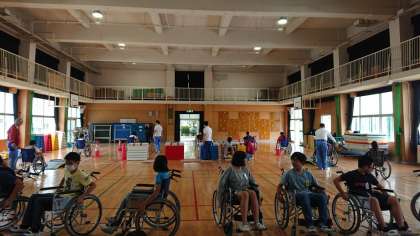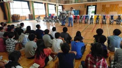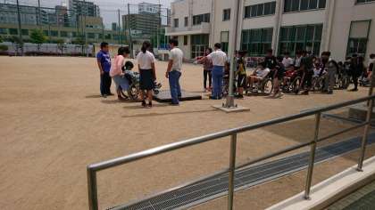 3時間目と4時間目に車いす体験講習会がありました。一人で車いすを動かす自走体験、車いすを押したり、乗って押してもらったりする介助体験をしました。「押すのが難しかった。」「乗ってみたらこわかったです。」など様々な感想が出ていました。話を聞いて、実際に体験することができ、たくさん学ぶことができました。