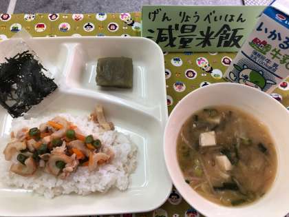 「まっ茶ういろう」は、上新粉を使った手作りの和風デザートです。新茶の季節を児童に知らせたいと思い、5月の献立としています。