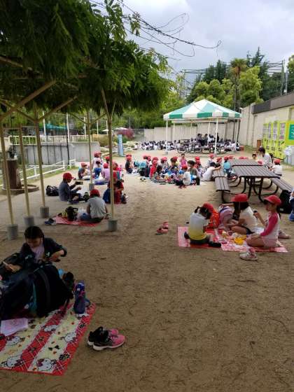 動物園を半分見て周りました。お弁当とおやつの時間です。子どもたちは、とても嬉しそうです。