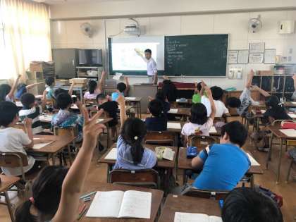 本校では学力向上推進モデル事業の指導教諭の先生に月に2〜3回来てもらっています。