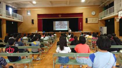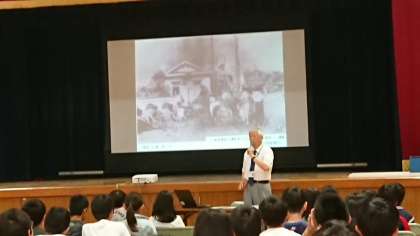 3、4時間目に講堂で、被爆体験伝承講話を受けました。小林さんが、受け継いだ被爆者の体験と平和への思い、被爆の実相などを話してくださいました。子供たちはしっかりと話を聞いて、たくさん質問をしていました。