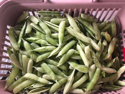 今日のえんどうは、生のものをさやから出して調理したものです。