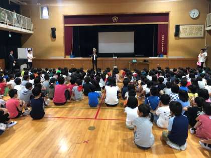 6月最初の全校朝会での校長先生の話は、帽子をかぶることの大切さについての話でした。暑くなるこの時期、熱中症対策として、登下校時や休み時間など、屋外では忘れずに帽子をかぶるようにしましょう。