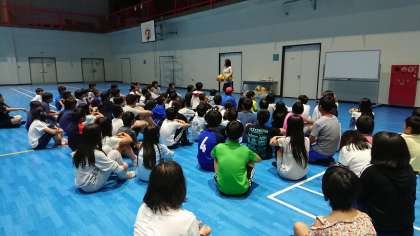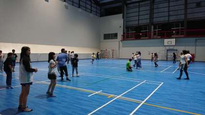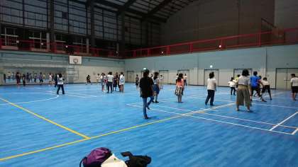 体育館を借りてみんなでドッジボール大会です。活動班対抗です。