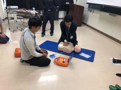 淀川区加島消防署の方に来ていただき「いざというときのために!応急手当てを身につけましょう。」をテーマに救命救急講習をしていただきました。