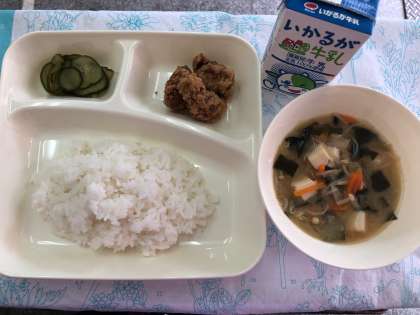 「豚肉の香味あげ」は、豚肉(角)にしょうが汁、料理酒、こいくちしょうゆで下味をつけ、でんぷんをまぶし、油であげています。
