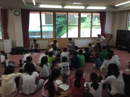 みやま荘に戻り、お楽しみのキャンプファイヤーの練習です。