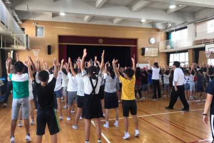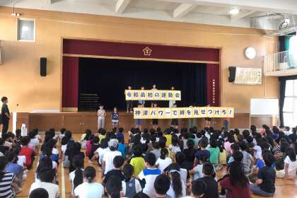 また代表委員会からは、今年の運動会のスローガンが発表されました。今年は「令和最初の運動会、神津パワーで絆を見せつけろ!」です。