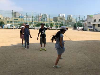 いろんな学年が混ざって大縄をしている様子です。とても楽しそうでした。
